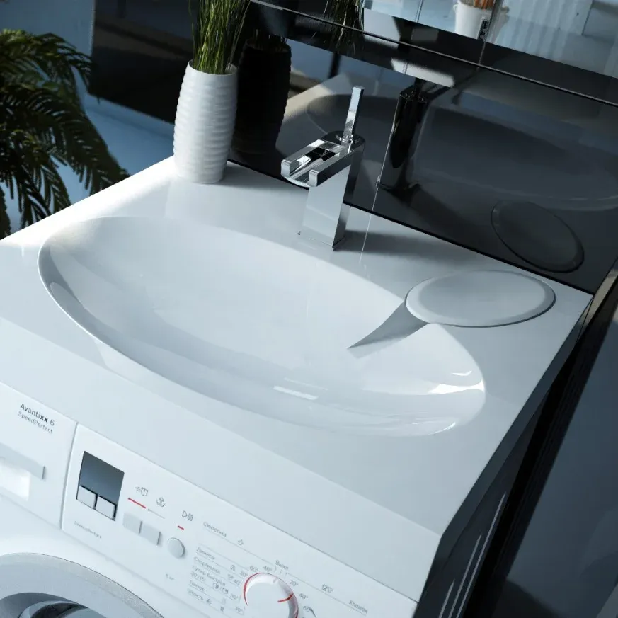Покрытие гелькоут придает раковине на стиральную машину премиальный блеск и защищает литьевой мрамор от воздействия моющих средств и красящих веществ.