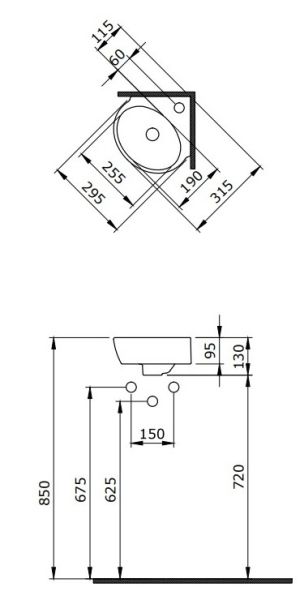 Подвесная раковина из санфарфора Berges Small размером 31,5х30х9,5 см.Угловая, с отверстием под смеситель, глянцевая белая.Крепеж в комплекте. Подходит для использования на столешнице.