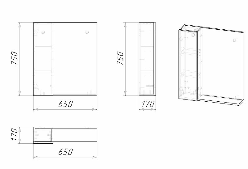 Зеркальный шкаф изготовлен из ЛДСП, устойчивой к механическим воздействиям, перепадам температур и высокой влажности.