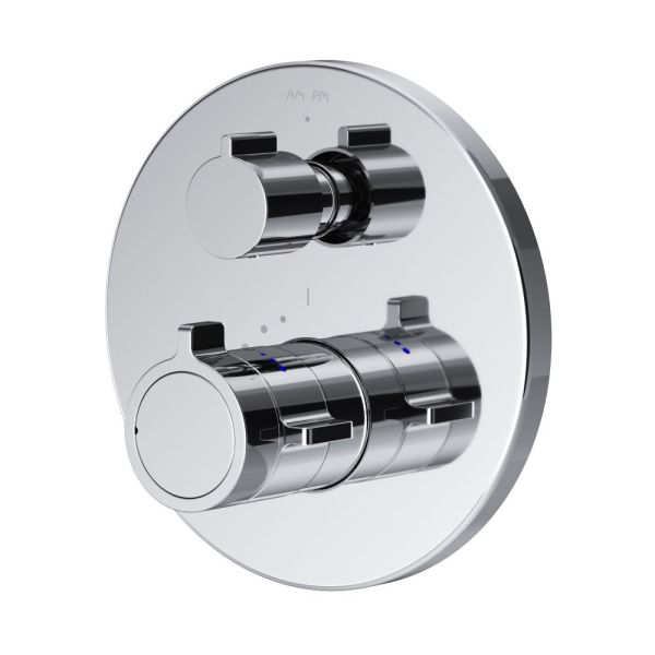 Смеситель Am.Pm X-Joy F85A65600 для ванны и душа с термостатомКоллекция X-Joy включает в себя по-настоящему дизайнерские продукты в своем ценовом сегменте. Разработанные дизайн-агентством GP designpartners из Австрии, они завоевали любовь многих покупателей.Встроенный смеситель X-Joy с термостатом - идеальное решение для вашей ванной комнаты. Встроенный механизм освобождает ванную комнату от лишних деталей, превращая пространство в идеальное место для себя. Термостатический картридж с высокочувствительным термоэлементом и быстрой реакцией на изменения температуры или давления в водопроводной сети защищает от ожога даже при внезапном отключении холодной воды.Cмеситель имеет два варианта выхода - вверх и вниз. За счет чего при установке очень удобно использовать его как под верхний душ, так и под гигиенический или ручной душ. Удобные ручки управления потоком и температурой воды расположены на одном уровне, что позволяет менять режимы легко и просто.Покрытие Everlast – вдвое превышает отраслевые стандарты по прочности и износостойкости. Ювелирный блеск и прочность покрытия достигаются по стандарту Chrome plating standard NSS 80H.Отдельная гарантия на корпус и покрытие – 10 лет, в два раза больше чем принято по европейским стандартам.