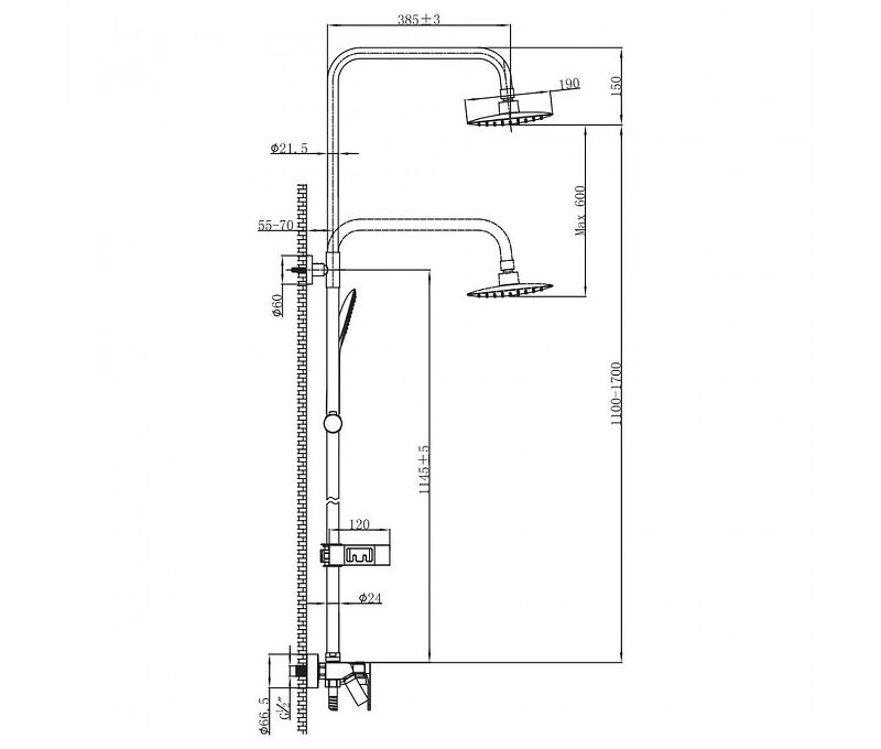Ручной душ с 1 типом струи и регулируемым по высоте креплением.