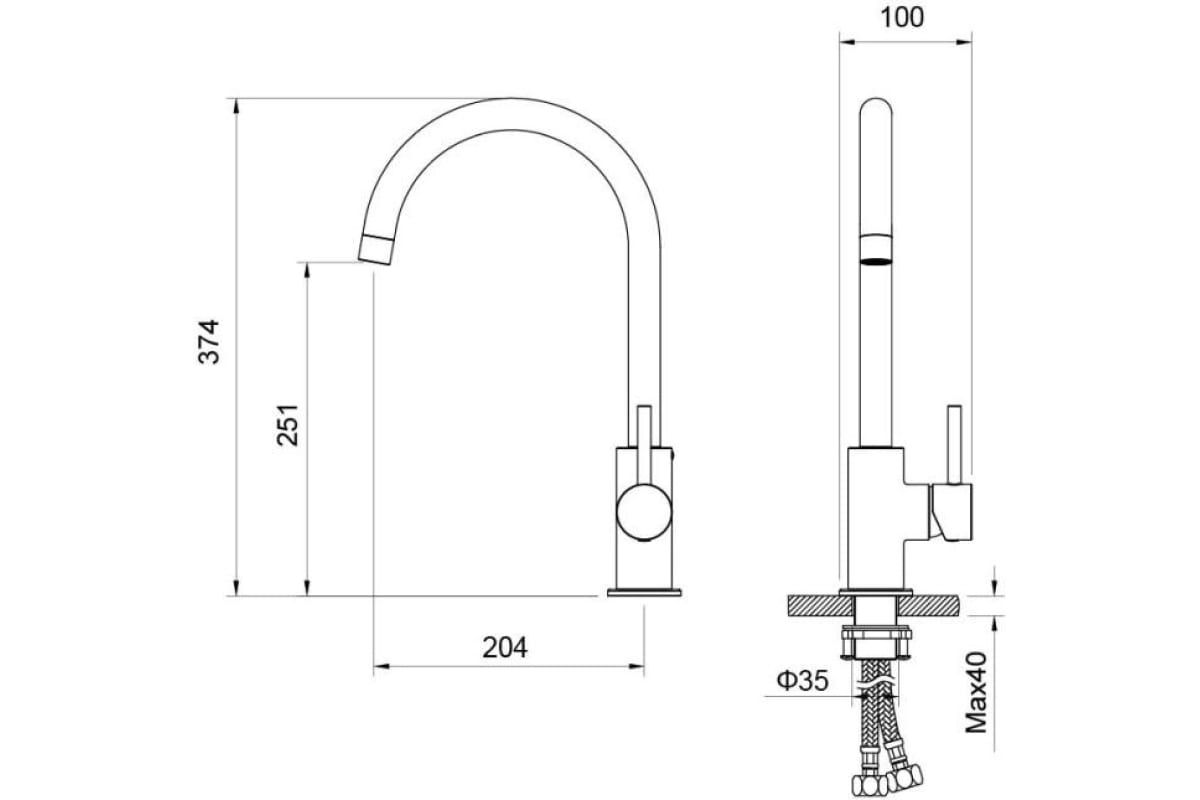 • Высота смесителя: