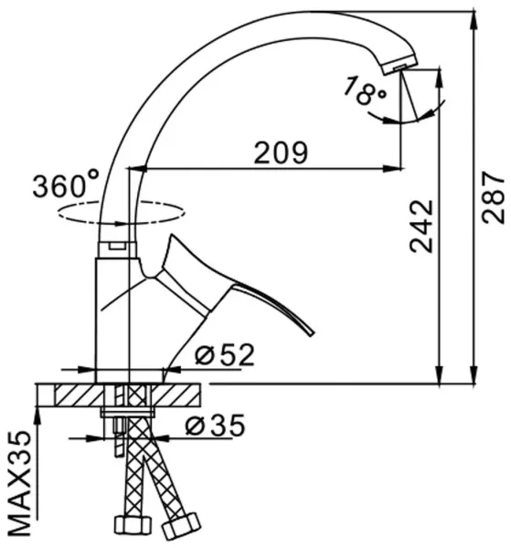 • Высота смесителя: