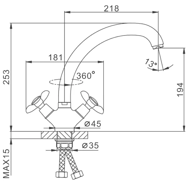 - Высота смесителя:25.3