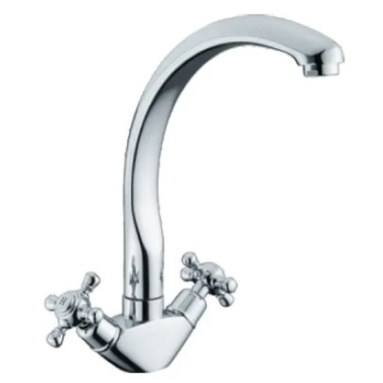 Cмеситель для кухонной мойки Gappo G4145 - двухвентильная модель из латуни, с поворотным изливом. Имеет гибкую подводку (500 мм) и кран-буксы с керамическими пластинами (угол поворота — 180 градусов). Цвет - хром.
