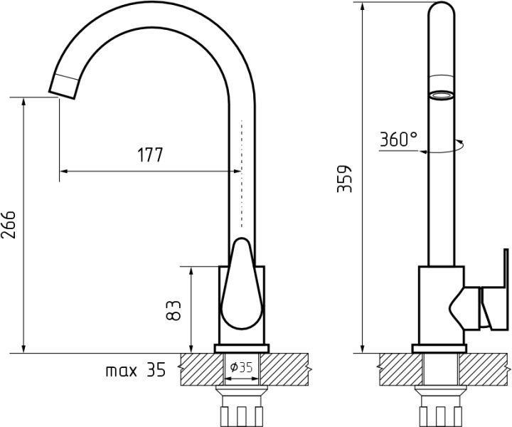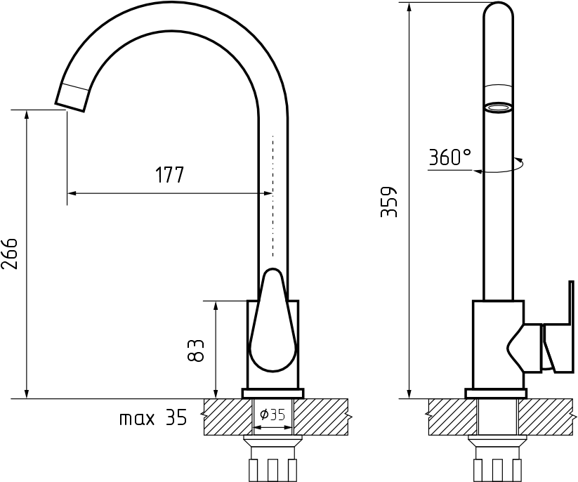 • Высота смесителя: