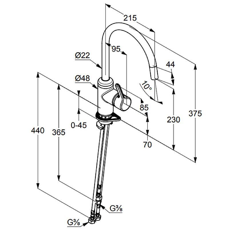 • гибкая подводка G 3/8
