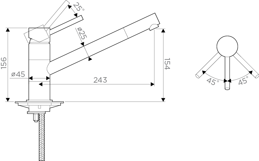 • Гибкий излив: