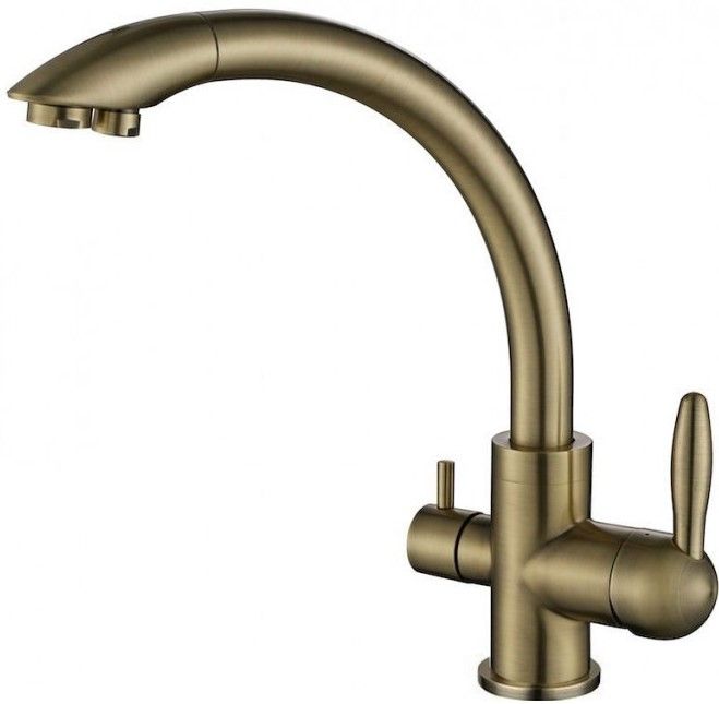 Смеситель для кухни однорычажный, с возможностью подключения фильтра питьевой воды, артикул Es213001-BRМатериал корпуса - латунь высокого качества. Многослойное, стойкое к истиранию покрытие. Долговечный керамический картридж диаметром 35 мм. Керамический переключатель на фильтр питьевой воды. Съемный пластиковый аэратор, который обеспечивает мягкую струю, ровный и экономичный поток воды. Простой монтаж, стандартное подключение.