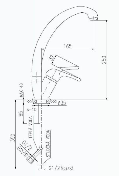 • Высота смесителя: