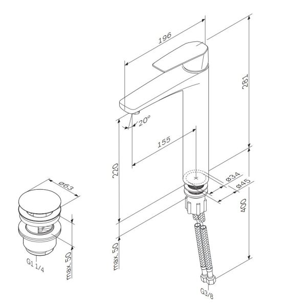 • Высота смесителя: