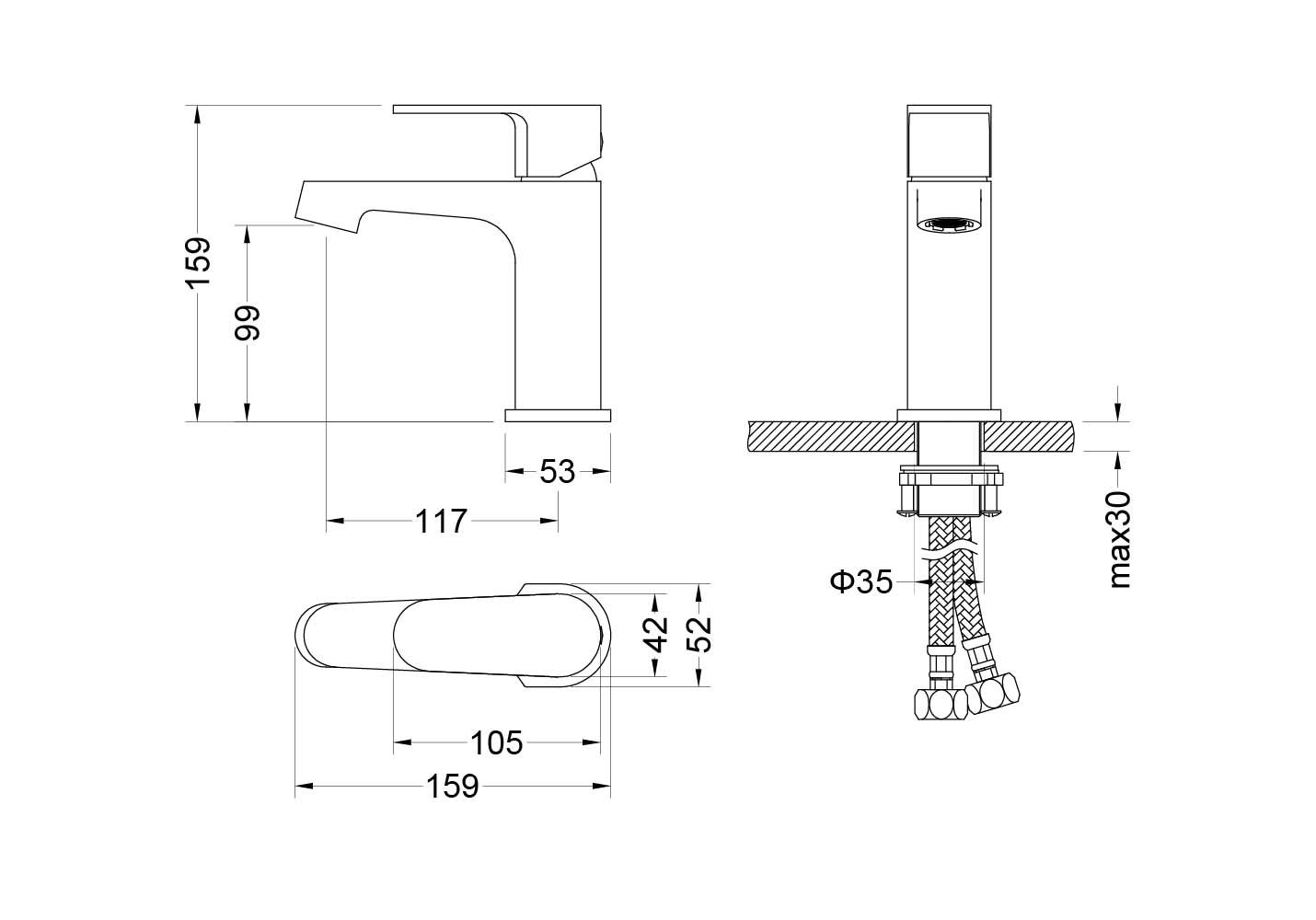 • Высота смесителя: