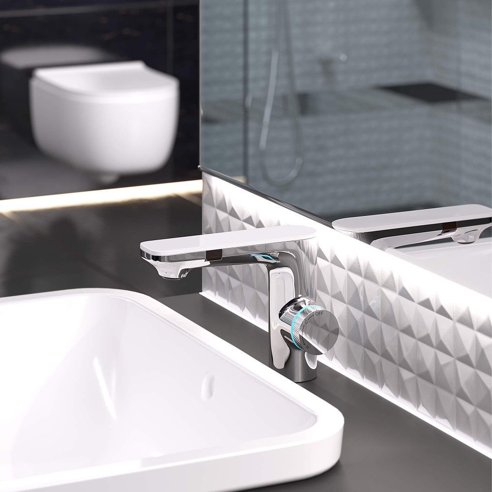 Два режима включения: боковой сенсор отвечает, за непрекращающийся поток воды (реакция 0,1 сек.), фронтальный сенсор - за экономичный, прерывающийся, поток воды (реакция 0,5 сек.).