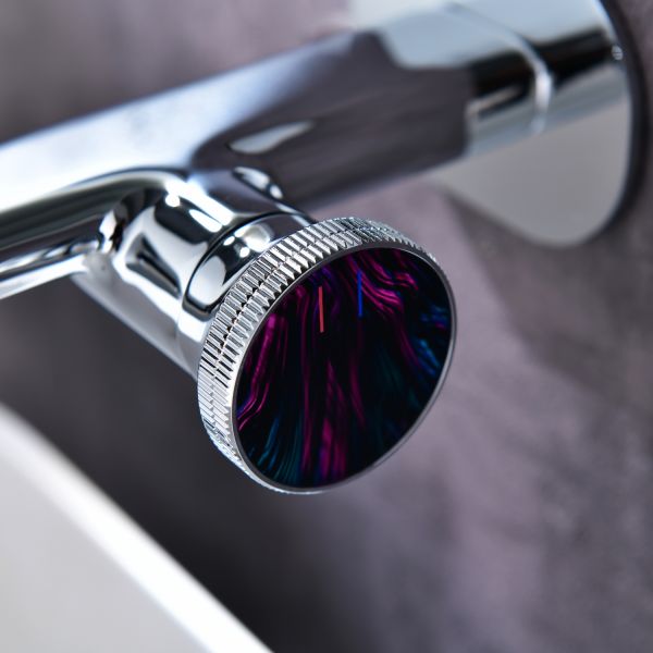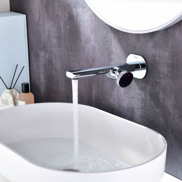 Смеситель для раковины настенного монтажа датского производителя Black&White в цвете глянцевый хром. Наружная и внутренняя часть изделия изготовлена из сантехнической латуни марки HPB 59- ресурсный и безопасный для Вашего здоровья сплав. Для управления потоками воды и настройки температуры установлен прогрессивный керамический картридж с ручкой в форме диска с насечками, украшенный цветным элементом. В дизайне корпуса пересекаются плавные линии простых геометрических фигур, что гармонично выписывается в современные и классические интерьеры.