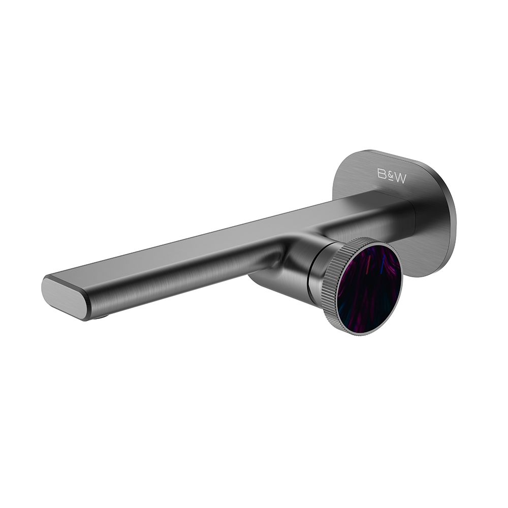 Смеситель для раковины настенного монтажа датского производителя Black&White в цвете оружейная сталь. Наружная и внутренняя часть изделия изготовлена из сантехнической латуни марки HPB 59- ресурсный и безопасный для Вашего здоровья сплав. Для управления потоками воды и настройки температуры установлен прогрессивный керамический картридж с ручкой в форме диска с насечками, украшенный цветным элементом. В дизайне корпуса пересекаются плавные линии простых геометрических фигур, что гармонично выписывается в современные и классические интерьеры.