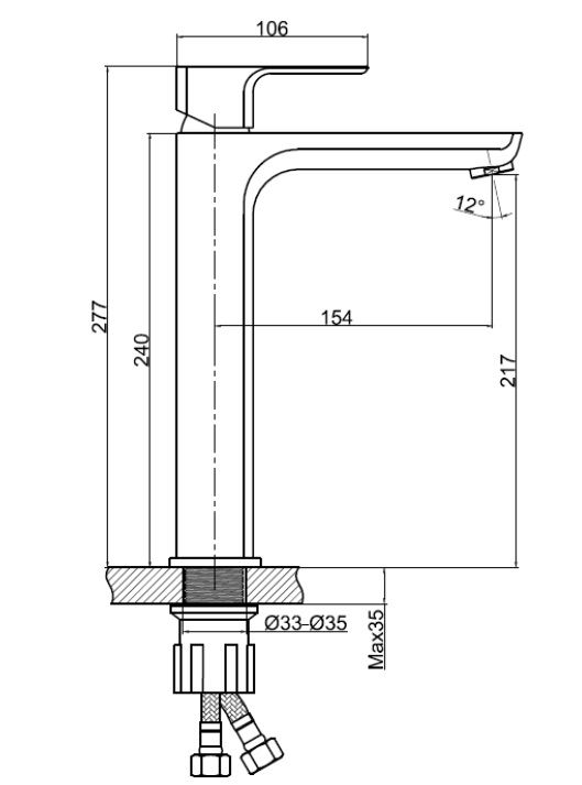 • Высота смесителя: