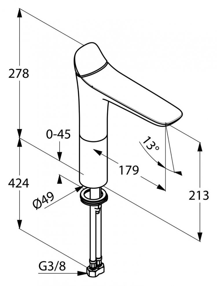 • дина излива 213 мм