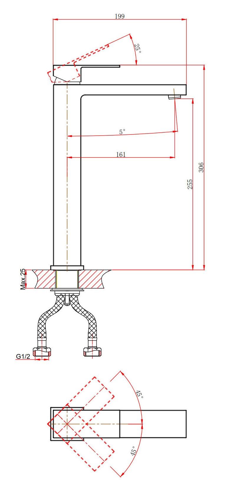 - Высота смесителя:30.6