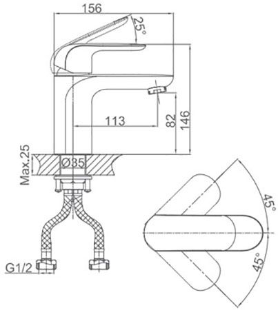 • Стандарт подводки: 1/2