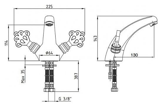 Смеситель для раковины E.C.A предназначен для подачи горячей и холодной воды в ванных помещениях. Модель оснащена вентилями и керамической кран-буксой для бесшумного смешивания воды. Дополнительные характеристики: