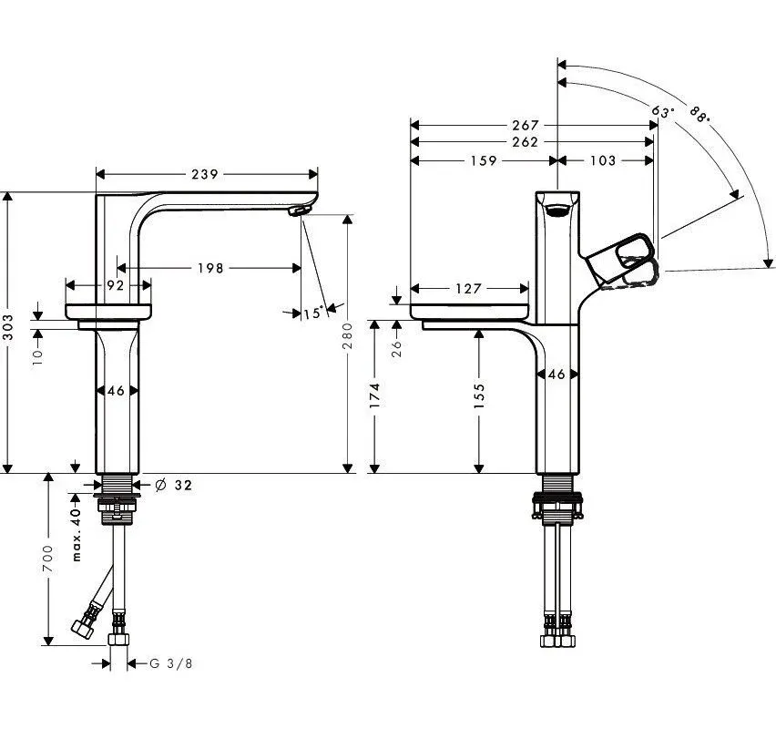 Вылет излива 198 мм