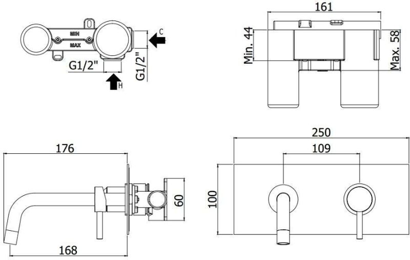 Смеситель для раковины Paffoni Light LIG101NO/M (с внутренней частью)