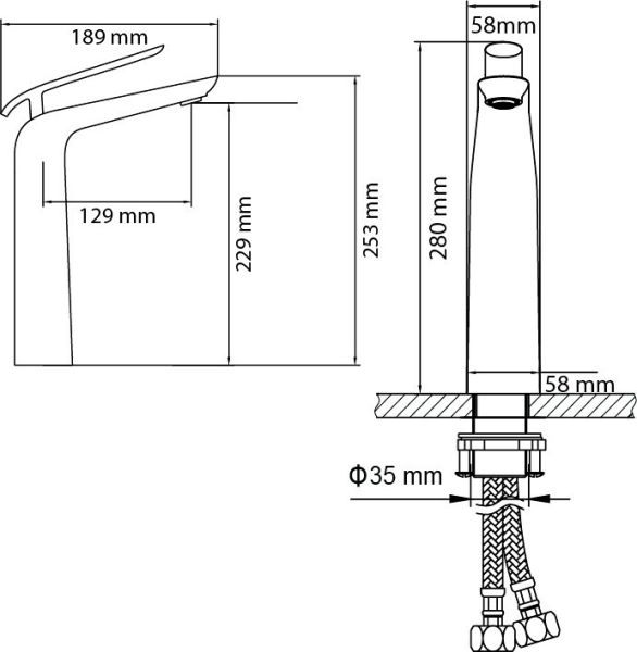 • Высота смесителя:
