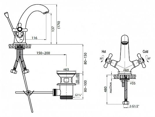 Оснащение: донный клапан, аэратор