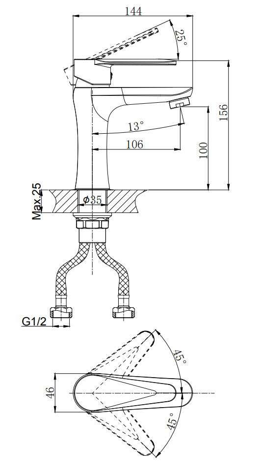 - Высота смесителя:15.6