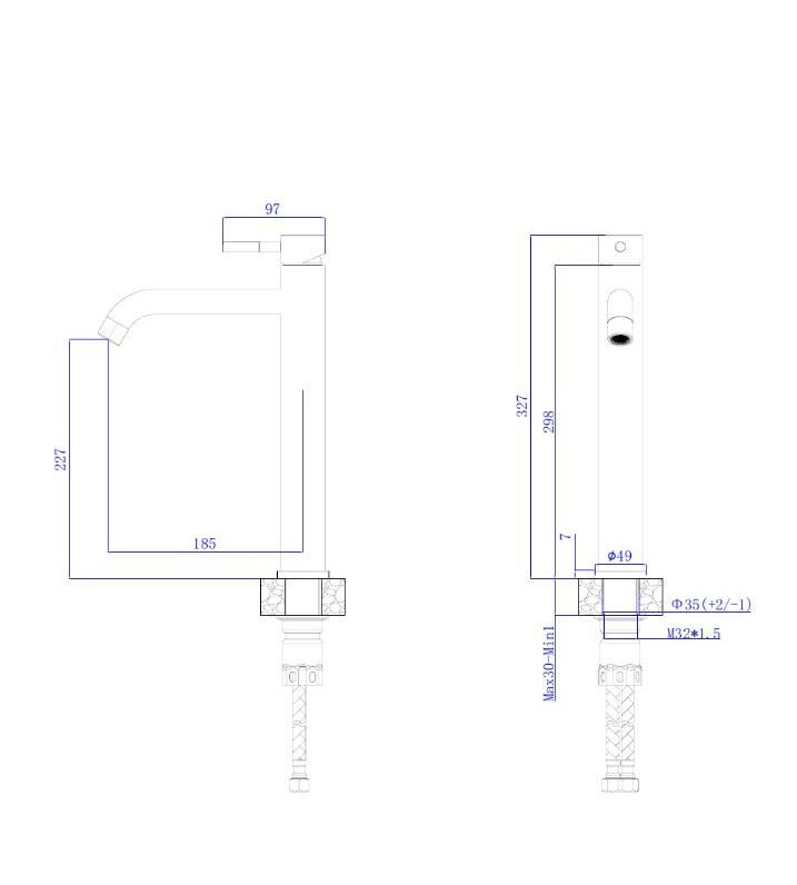 • Высота смесителя: