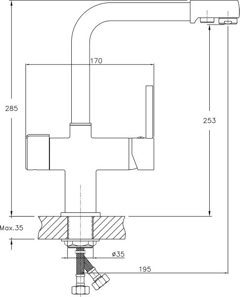 - Высота смесителя:25.8