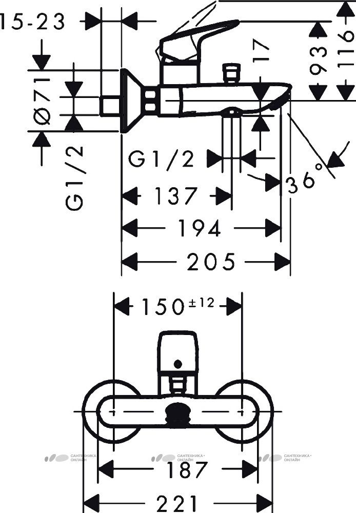 Смеситель для ванны, однорычажный Hansgrohe Logis 71400000 Характеристики продукта: -выступ 19... Подробнее