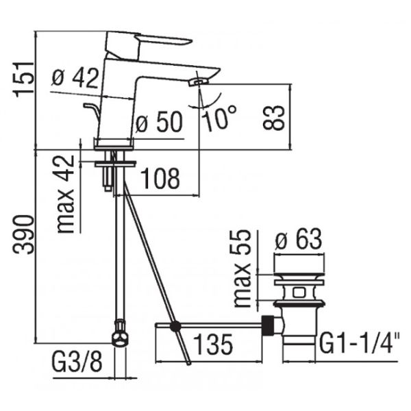 • Высота излива:83