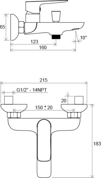 • высота смесителя : 150 мм