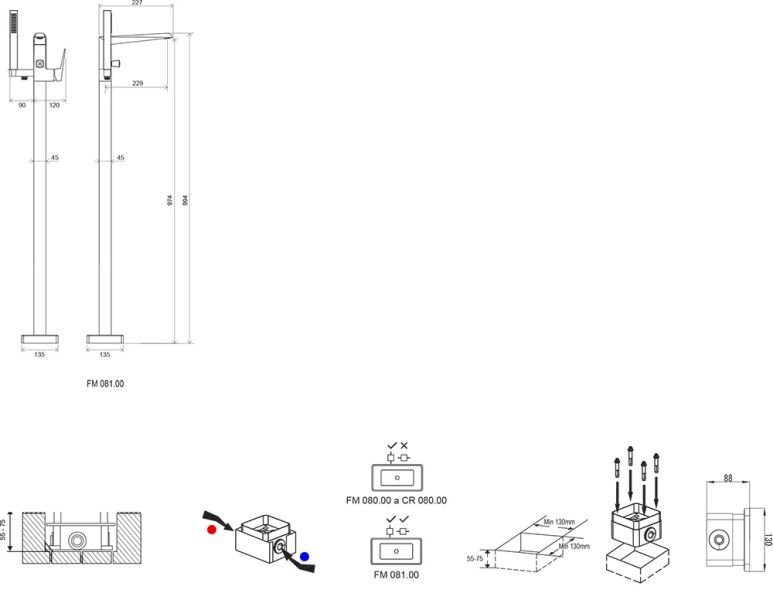 • исполнение: поставляется вместе с R-box - крепежным модулем к трубопроводу в полу