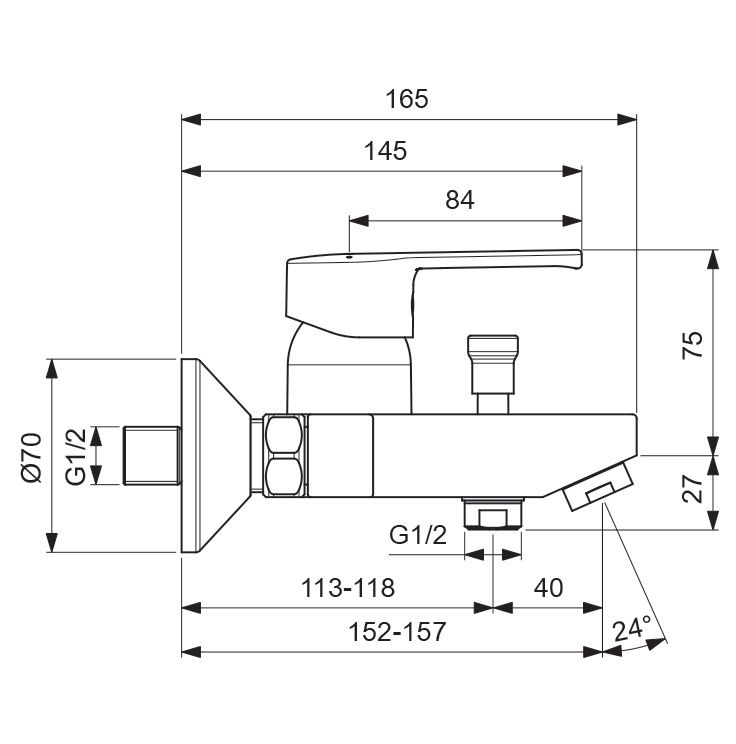 UNO Настенный смеситель для ванны/душа.Смеситель однорычажный