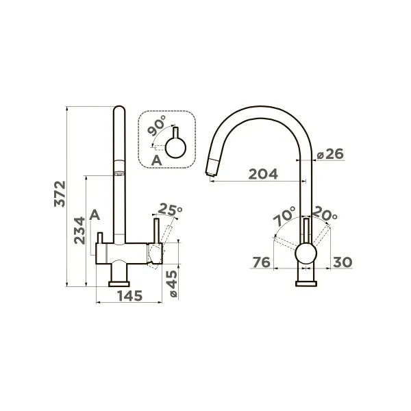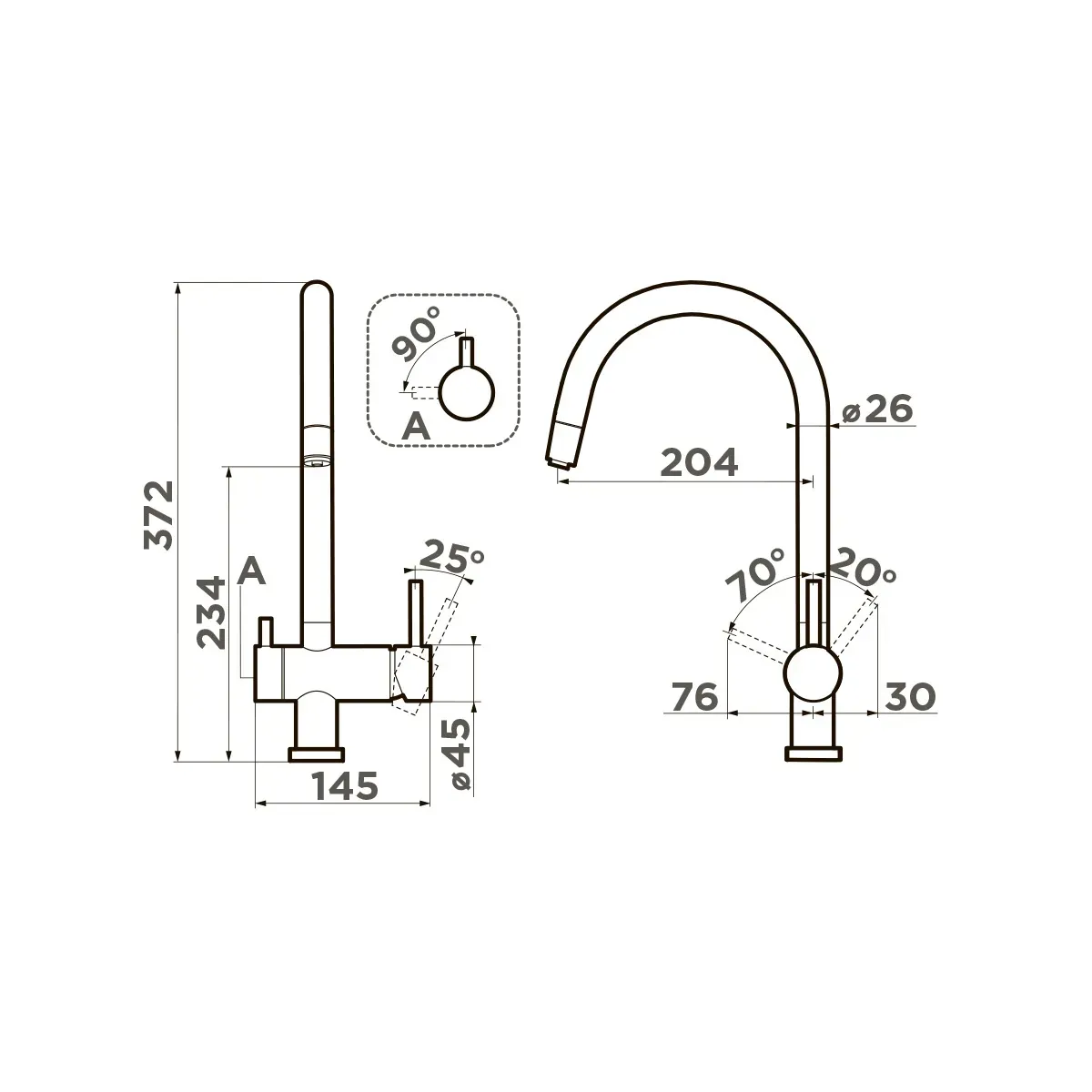 • Высота смесителя: