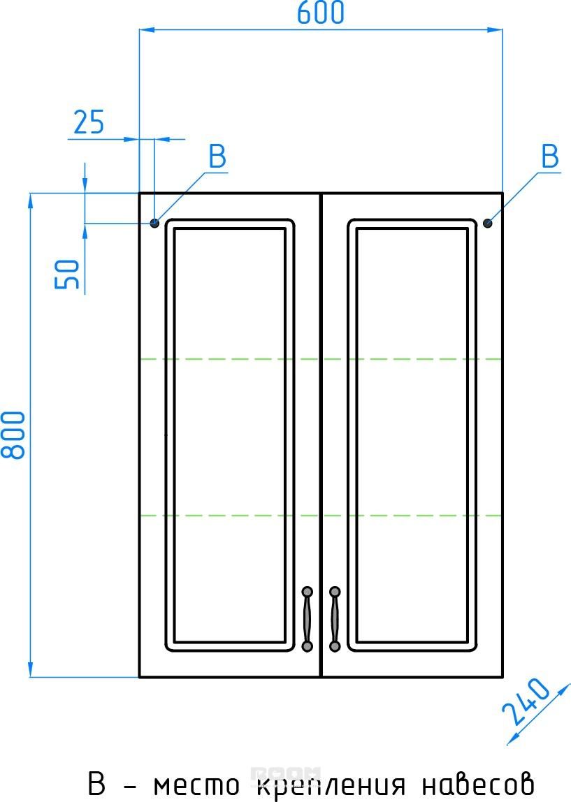 Подвесной шкаф бренда "Style Line" коллекции "Олеандр-2" классического дизайна, декорированный ручками с керамическими вставками "под бронзу" с изящным рисунком; все материалы полностью влагостойкие