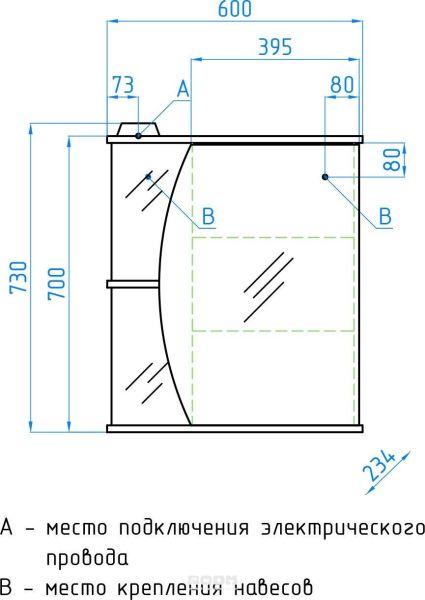 - Тип:зеркало-шкаф с подсветкой