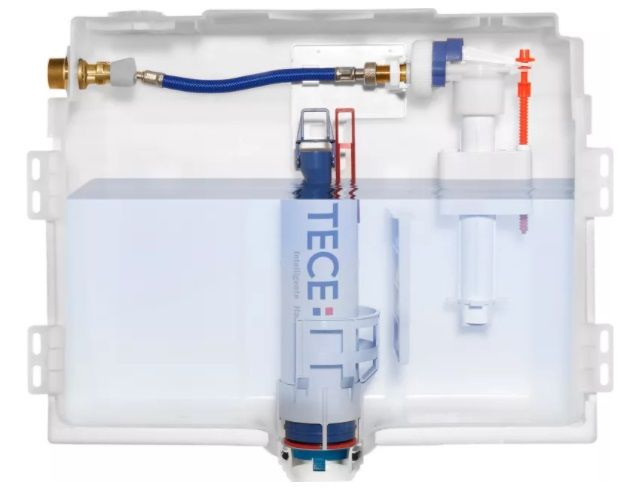 Сливной бачок Uni для установки в каркасе. Комплект поставки: • Предохранительный бак из ударопрочного пластика • Сливной бачок полностью собран и опломбирован • Угловой кран и соединение сливного бачка в сборе; соединение сливного бачка с внутренней резьбой 1/2" • Объем бачка 10 литров; стандартный предустановленный объем смыва 6 литров, возможность настройки объема смыва 4,5/7,5/9 литров; малый смыв 3 литра с системой двойного смыва. Оставшийся объем можно использовать для быстрого смыва • Изоляция для предотвращения образования конденсата • Для панелей и рукояток смыва унитаза TECE • Возможность установки системы с одинарным или двойным смывом в зависимости от используемой панели смыва • Проверено в соответствии с DIN EN 14055 • Акустическая группа 1 в соответствии с DIN 4109 - протокол испытаний P-IX3837/l • Бесшумный гидравлический заливной клапан • Включает монтажную панель и крепежные элементы • Сливной патрубок