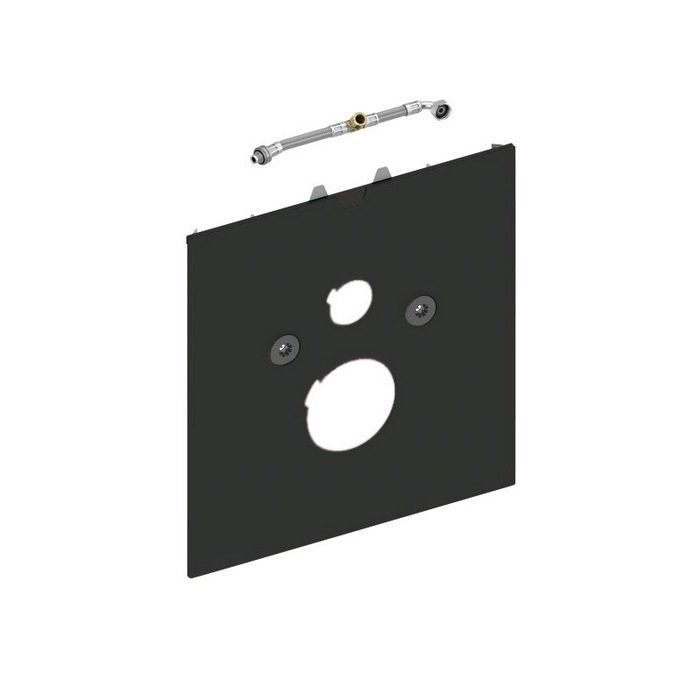 Нижняя стеклянная панель для установки унитазов-биде Geberit Aquaclean Sela, Mera и Tuma, Toto Washlet SG, Toto Washlet EK или GL со скрытыми подключениями, Grohe Sensia, V & B ViClean U+ или Laufen Riva в комплекте со звукоизолирующей прокладкой и сменным армированным шлангом для подключения воды внутри бачка. Размеры (В x Ш x Г): 446 x 430 x 16 мм