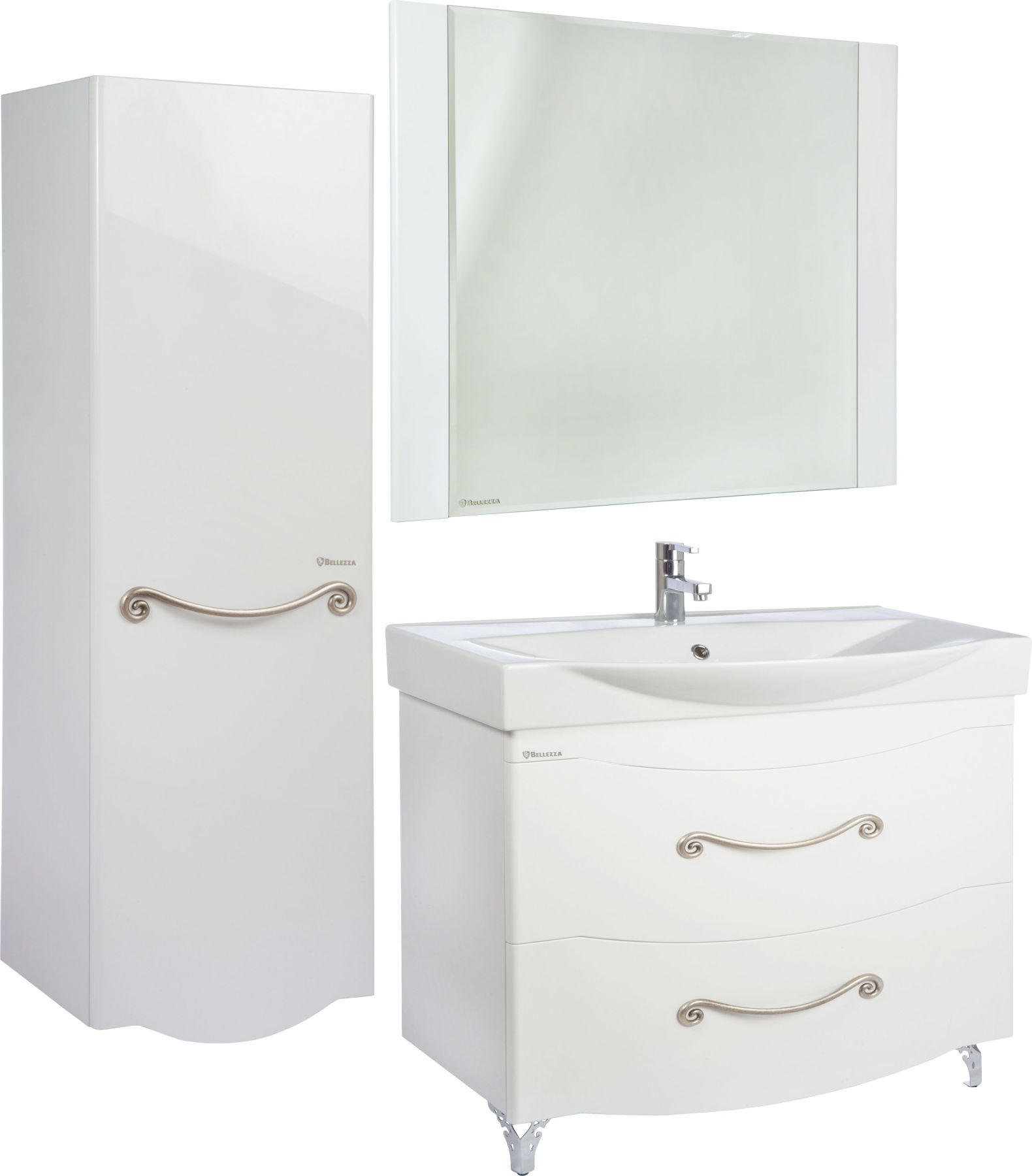 Тумба для комплекта Bellezza прекрасно впишется в дизайн любой ванной комнаты, будь то компактная ванная в многоэтажном доме или большой санузел в загородном коттедже. Напольный способ установки производится непосредственно на пол, при этом конструкция максимально устойчива при серьезных физических нагрузках.