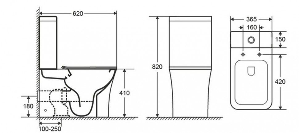 - Прилегание унитаза к стене:вплотную
