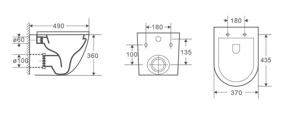 • Прилегание унитаза к стене: