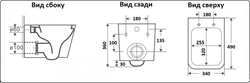 • Прилегание унитаза к стене: