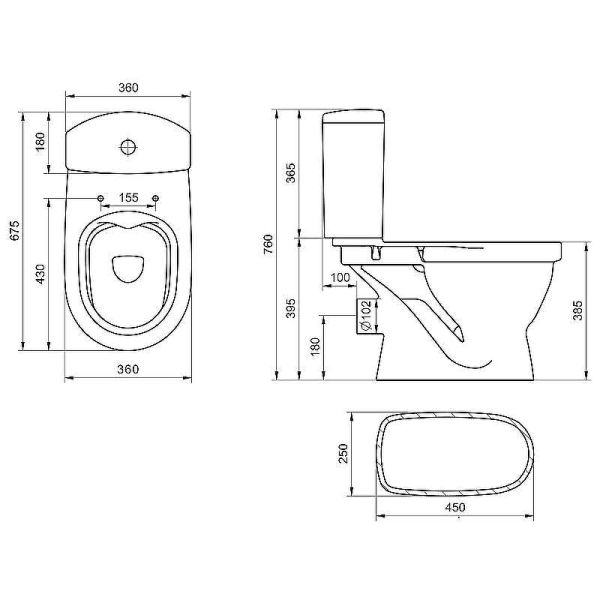 • Укороченный унитаз: