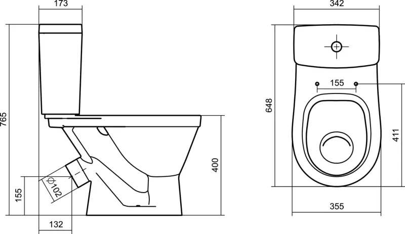 • Укороченный унитаз: