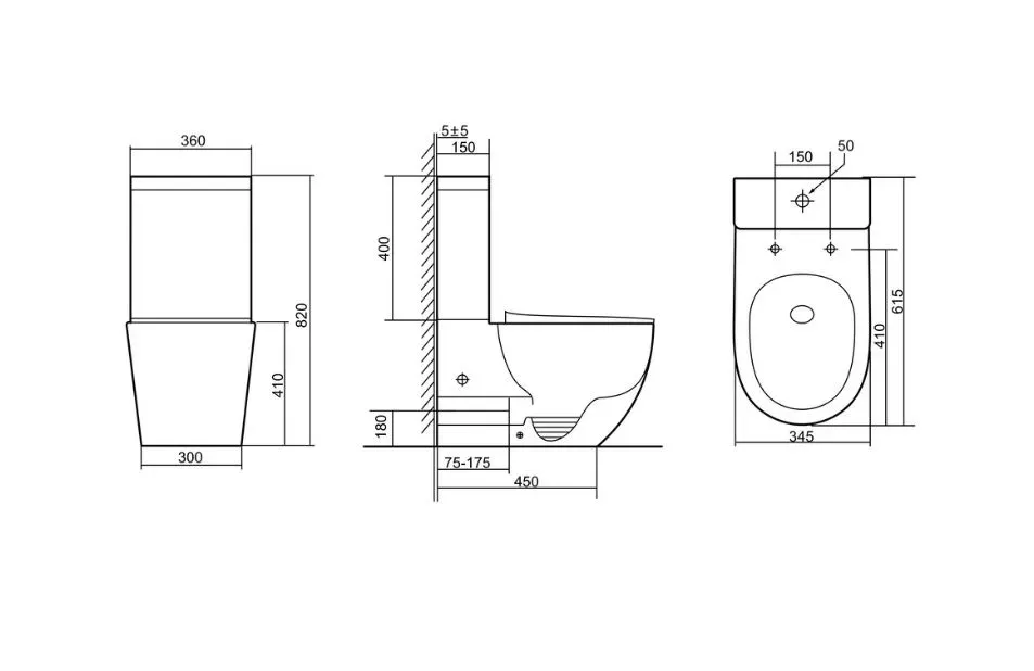 • Прилегание унитаза к стене: