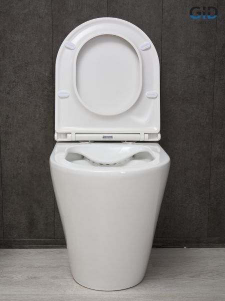 Cortado — стильная коллекция округлых унитазов и биде со скосом к низу. Испанское качество гарантирует надежность, а европейская сертификация подтверждает их качество. Приставной безободковый унитаз GiD TRS-263 — стильная напольная модель с горизонтальным выпуском предназначена для установки со скрытым бачком. Выполнен из высококачественной керамики белого цвета с глянцевым покрытием, что обеспечивает долговечность и уникальный внешний вид. Крышка унитаза изготовлена из прочного дюропласта и оснащена функцией микролифта, которая обеспечивает плавное и бесшумное опускание.