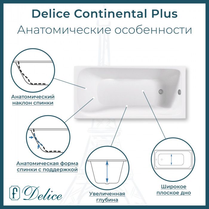 Ванна чугунная Delice Continental PLUS DLR230642 100х70 купить
